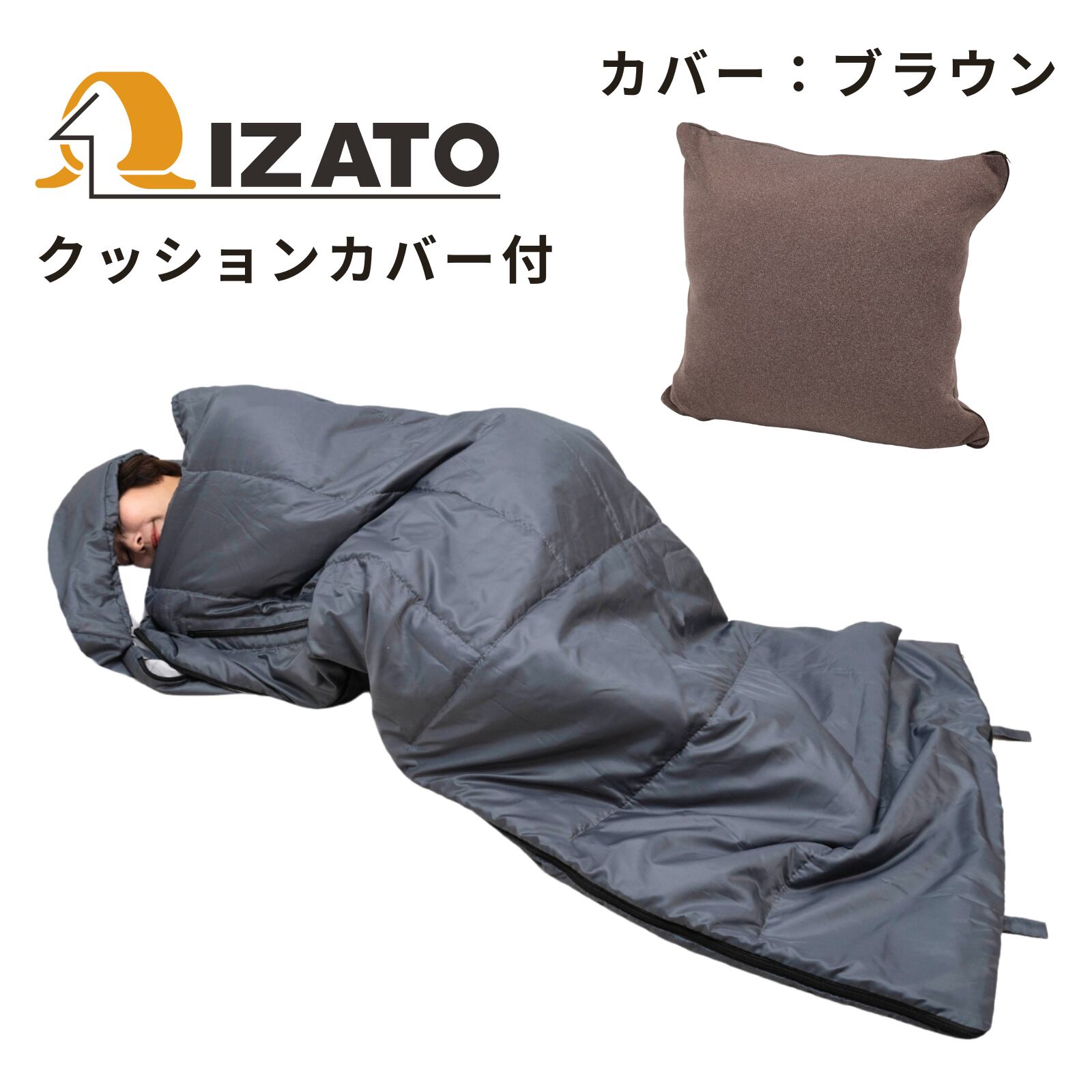 腕が出せるクッション型防災寝袋 専用カバー付(ブラウン)